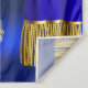 Royal Blue Prince Babydusche Hintergrund mit bezauberndem afrikanisch-amerikanischem Babyprinz und goldenes Kissen auf einem schönen königsblauen und goldenen Drape und Tassel Hintergrund. Diese extravagante, königsblaue und goldene Prinzendusche lässt sich leicht mit Text anpassen.