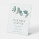 Ein minimalistisches Face Mask Station Schild für Ihre Hochzeit mit einem eleganten Zweig blauer Eukalyptus-Blätter über der Typografie. Der Text kann leicht mit Ihren Worten personalisiert werden. Weitere Editiermöglichkeiten, wie z.B. das Ändern von Hintergrund- und Textfarben und das Ändern der Textgröße, können Sie über die Option Weitere Anpassungen vornehmen. Bitte melde mich, wenn du Hilfe brauchst.