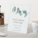 Blue Eucalyptus Blätter Face Mask Station Sockelschild