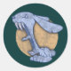 Wütend, blau, Cartoon Hasen mit großem offenen Mund mit langen Reißzähnen, auf einem goldenen Kreis, schwer Altersangst. T - Shirt, Geschenke.