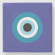 Blauer Untersetzer mit kühnen bösen Augen-Grafik und Kork zurück.