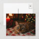 Blue-Eyed Christmas Cat Postcard Cozy Fireplace Postkarte