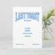Raise a glass to the bride-to-be with this “Last Toast” bachelorette party invitation. Designed with bold varsity-style lettering and a minimalist front, this invite sets the tone for a stylish and unforgettable celebration.