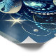 An opulent blue masquerade mask unfolds in a swirl of sweeping feathers, luminous pearls, and ornate jewel details, creating a captivating Venetian fantasy scene. Deep navy, sapphire, teal, and soft ivory blend in a rich, moody color story that feels both elegant and enchanting. Intricate filigree patterns, cascading teardrop gems, and graceful feather plumes create movement and drama against a midnight backdrop dusted with delicate light accents. The overall aesthetic is romantic, baroque-inspired, and whimsically theatrical, evoking grand ballroom evenings and timeless mystery. A statement piece full of depth, shimmer, and artistic flourish. AI generated artwork.