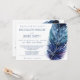 Blaue Feather Hochzeitseinladungen mit anpassbarem blauen Text, wenn das Paar mit seinen Familien aufnimmt, auf weißem Hintergrund gedruckt