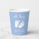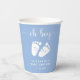 Niedliche blaue Papiertücher für Ihre Babydusche mit "oh Junge" in einem stilvollen weißen Drehbuch mit Wimpern und einer weißen Wasserfarbe von Babyfüßen. Unterhalb können Sie sich einfach mit Ihrem Namen und Ihrem Duschdatum personalisieren.