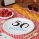 Fünfzig ist fabelhaft! Diese Teller sind perfekt, um das "fabelhafte Gefühl" eines jeden zu feiern, der diesen bedeutenden Geburtstag feiert. Dieses Design hat eine große Zahl '50' in schwarz mit dem Wort 'fabulous' in blau, Schrift Typografie.