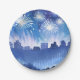 Blue Firework Display | Fireworks Watercolor Cityscape Design Paper Plates