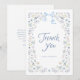 This blue floral thank you card keeps things soft and elegant with watercolor blooms and a bow accent. Personalize your message and send a thoughtful note that coordinates effortlessly with the rest of the collection.