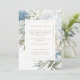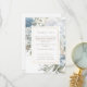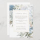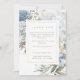 Beerdigung, Untergang danke Karte. Familienname und danke auf der Rückseite. Typografie. Blaues Hydrangea-Blumenspray. Nachricht.