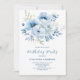 Blauer Blumengeburtstag Einladung. Einfach den Text ändern. Hübsche Aquarellblüte