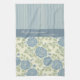 Blue Floral Block Print w Blue Stripes Geschirrtuch