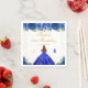 Diese elegante und glamouröse Geburtstagsserviette besticht durch eine wunderschöne Prinzessin mit braunem rotem Haar und einer hellen Haut in einem königlich blauen Ballkleid. Der Text kombiniert handgeschriebene Skripte mit modernen serifenlosen Schriftart für ein elegantes und raffiniertes Aussehen. Die Blumenarrangements, Schmetterlinge und Goldkonfetti bilden die perfekte Mischung aus rustikal und schick. Grafiken von www.etsy.com/uk/shop/SunflowerDayLove