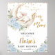 Blue Floral Bunny Rabbit Moon Baby Shower Welcome Poster