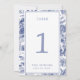 Dieses personalisierte, staubige, blühende Chinoiserie-Tischnummer-Zeichen eignet sich ideal für eine Hochzeit, eine Verlobungsfeier, ein Brautparty oder ein Probe-Dinner. Das Design zeichnet sich durch die trendige, staubblaue Farbe mit einfachen, modernen Schriftart aus. Passen Sie sie mit Ihren Nummern, Namen und Veranstaltungsdatum an, um sie zu einer Art zu machen!
