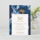 Blue Floral Elegant Modernes Foto zum 50. Jubiläum Einladung