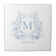 Blue Floral Family Crest Monogram Ceramic Tile Fliese