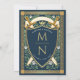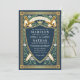 Blue Floral Fantasy Swords Shield Monogram Wedding Einladung