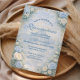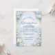 This elegant quinceañera design features a soft sky-blue watercolor background framed by lush florals, delicate roses, and refined gold ornamental details. Inspired by classic European garden stationery, the composition balances romantic florals with a light, airy center that keeps the text clear and readable when printed.