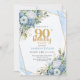 Blue Floral Gold Glitter 90th Birthday Celebration Einladung