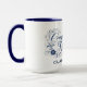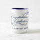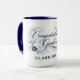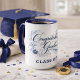 A graceful graduation-themed script design framed by blue floral swirls, featuring a customizable “Class of 20YY” year for personalized celebration themes.