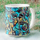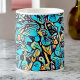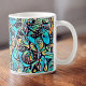 Dieses Design zeichnet sich durch ein türkisblaues Design aus, das Blumenelemente in ein lebendiges Muster im modernen Kunststil einbindet, das Ihnen vielleicht einen Schub verleiht, wenn Sie Ihren morgendlichen java oder Nachmittagstee schnappen. Dieses Design ist ein stilisiertes, abstraktes Muster basierend auf einer Hydrangea.