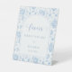 Elegant boho chic wedding or bridal shower recipe sign featuring light blue porcelain toile flowers and a sweet message inviting guests to share their favorite recipes for the bride-to-be. This classic design adds a refined touch to your celebration and is perfect for bridal shower or wedding decor, recipe card table signs, bohemian 'Something blue' themed celebrations.