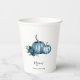 Rustikale und boho Fall Baby Dusche Papier Tasse mit Illustration von blauen Kürbis und Blume.