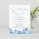 Blauer Blumenstrauß etwas Blauer Brautdusche Einladung Etwas Blau bevor ich Brautdusche Einladung mit einem schönen blauen Blumenarrangement auf der Basis mit einigen blauen Beeren. Die Blautöne der Brautdusche sind mit einem modernen Kalligrafietext in blau übersetzt.