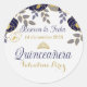 Blue Floral Spanish Quinceanera Reserva la Fecha Runder Aufkleber