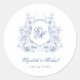 Blue Floral Wappen Monogram Elegant Wedding Runder Aufkleber