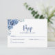 Eine elegante blaublühende Hochzeitskarte mit RSVP-Antwortkarte, die Ihre Gäste mit Ihrer Einladung zur Bestätigung ihrer Teilnahme an Ihrem besonderen Tag einbezieht.