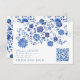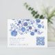 Blue Floral Wedding RSVP QR Code response Card Begleitkarte