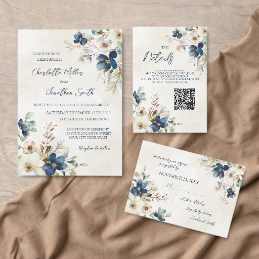Elegant Blue Floral Winter WeddingDesignt von Dreaming Mind Cards
