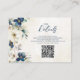 QR code wedding detail card inserts for your winter wedding with elegant navy blue and cream watercolor floral theme. Use these cards to direct your guest to your wedding website for more details about your accommodations, directions or to RSVP online.