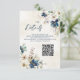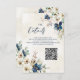 QR code wedding detail card inserts for your winter wedding with elegant navy blue and cream watercolor floral theme. Use these cards to direct your guest to your wedding website for more details about your accommodations, directions or to RSVP online.