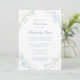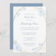 Bridal Dusche Einladung für die Blue Floral Wreath Collection. Das Design erinnert mit seinen pastellfarbenen Tönen an einen Frühlingssinn und neue Anfänge. Blaue Aquarellblüten, Weinreben und Blätter bilden einen weißen Hintergrund. Im Gegensatz dazu ist die Rückseite der Karte ein tiefes, staubiges Blau. Probieren Sie dieses Design auf den eleganten Papieroptionen, wie Leinen oder Perlen. Das weiche Papier wird die Feinheit der Blüten erhöhen. Ideal für einen Garten oder ein frühlingshaftes Party.