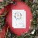 An elegant white background, decorated with watercolored blue flowers in a wreath, a blue bow and a golden cross. Personalize and add a name and details. Real silver foil text.
