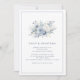 Blue Florals Border QR Wedding Abend Party. Verfügbar in digitaler Form und gedruckt. Ein elegantes, naturgetreu inspiriertes Design. Mit einem hellblauen und weißen Bouquet über vereinfachender und vollständig editierbarer Typografie. Fügen Sie Ihren QR-Code zu Ihrer Hochzeitswebsite auf der Rückseite hinzu, damit Ihre Gäste alle Details online sehen können, ohne separate Gehäuse benötigen zu müssen. Text- und Hintergrundfarben können geändert werden, wenn Sie Ihr Hochzeitstil besser Anzug wünschen, ebenso wie die Farbe des QR-Codes, indem Sie die weitere Option anpassen.
