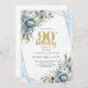 Blue Florals Gold Border 90th Birthday Invitation Einladung
