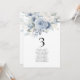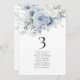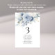 Blue Florals Namensschild Tischnummer Card. Editieren Sie Ihre Nummer für jede Tabelle und fügen Sie sie separat in Ihren Warenkorb ein. Das gleiche Design ist auf beiden Seiten, verwenden Sie für ein hängendes Display, sodass die Gäste ihren Sitz oder ihre Anzeige auf jedem Tisch finden können. Schöne staubblaue Blumen stehen oben. Personalisieren Sie einfach die Tischnummer und Ihre Gastnamen. Das gleiche Design ist auf beiden Seiten und wird gleichzeitig aktualisiert, wenn Sie die Wörter zu Ihrem eigenen ändern.