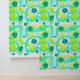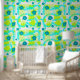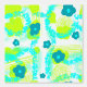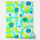 Fun, floral abstract pattern in aqua blue and lime green colors.