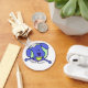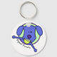 Der verrückte blaue Cartoon Fliegenhund hat einen gelben Tennisball in den Zähnen geklaut, während er seine Arme herumweht. Darunter steht: "Fyball Fanatic." Niedlicher Fliegenball-Schlüsselanhänger!
