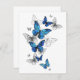 Flying Blue Butterflies Morpho und weiße Schmetterlinge auf einem hellen abstrakten Hintergrund. Morpho. Design mit blauen Schmetterlingen Morpho.