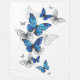 Flying Blue Butterflies Morpho und weiße Schmetterlinge auf einem hellen abstrakten Hintergrund. Morpho. Design mit blauen Schmetterlingen Morpho.