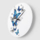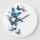 Flying Blue Butterflies Morpho und weiße Schmetterlinge auf einem hellen abstrakten Hintergrund. Morpho. Design mit blauen Schmetterlingen Morpho.