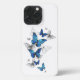 Flying Blue Butterflies Morpho und weiße Schmetterlinge auf einem hellen abstrakten Hintergrund. Morpho. Design mit blauen Schmetterlingen Morpho.