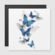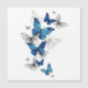 Flying Blue Butterflies Morpho und weiße Schmetterlinge auf einem hellen abstrakten Hintergrund. Morpho. Design mit blauen Schmetterlingen Morpho.
