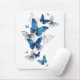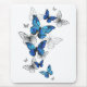 Flying Blue Butterflies Morpho und weiße Schmetterlinge auf einem hellen abstrakten Hintergrund. Morpho. Design mit blauen Schmetterlingen Morpho.