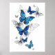 Flying Blue Butterflies Morpho und weiße Schmetterlinge auf einem hellen abstrakten Hintergrund. Morpho. Design mit blauen Schmetterlingen Morpho.